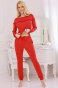 Komplet stworzono z myślą o wygodzie i eleganckim detalu. Spodnie z praktycznymi kieszeniami oraz dopasowanymi przy kostce ściągaczami zapewniają idealne dopasowanie. Możesz je również wyregulować samodzielnie, dzięki sznurkowi w pasie, który dopełnia elastyczną gumę.